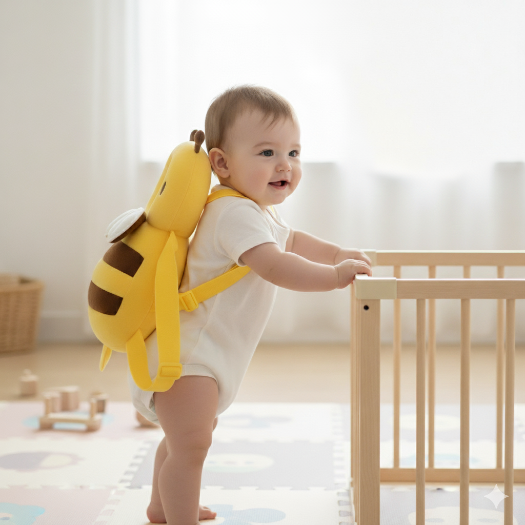 This head protection pad is designed as an extra layer of safety during early walking and crawling stages. Pediatric experts recommend combining wearable protection with safe play environments—soft mats, secure furniture, and close supervision—for the best all-around protection.