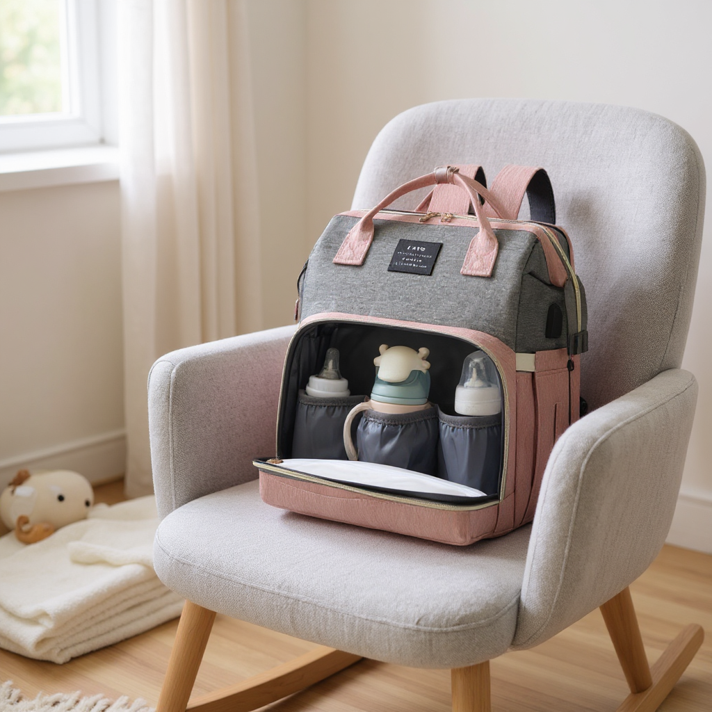 - When your baby needs to rest, unzip the back section of the bag and unfold it into a cushioned, enclosed crib. It provides a clean and safe space for naps β anytime, anywhere.